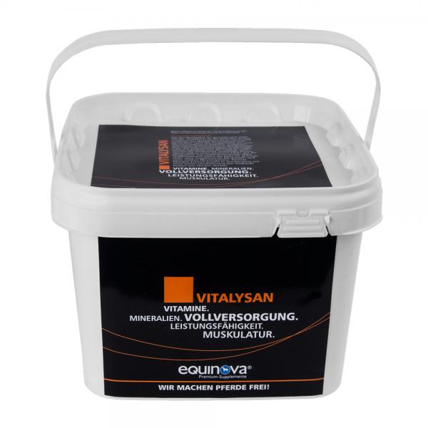 Equinova Vitalysan unterstützt die Körperfunktionen des Pferdes indem es den Körper mit den nötigen Vitaminen, Mineralstoffen und Spurenelementen versorgt. Dabei ist dieses Ergänzungsfutter an die neuesten wissenschaftlichen Erkenntnisse angepasst.