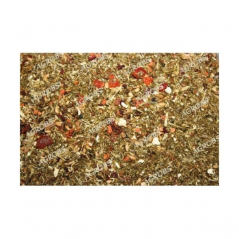 hauptsächlich aus warmluftgetrockneten Blättern von Gräsern, Samen und Kräutern hergestellt