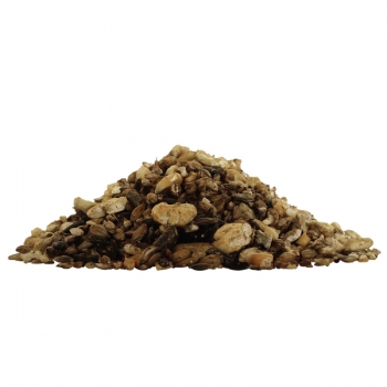 • aus Mais, Gerste, Weizen, Leinsamen und Sonnenblumenkernen sowie französischem Schwarzhafer