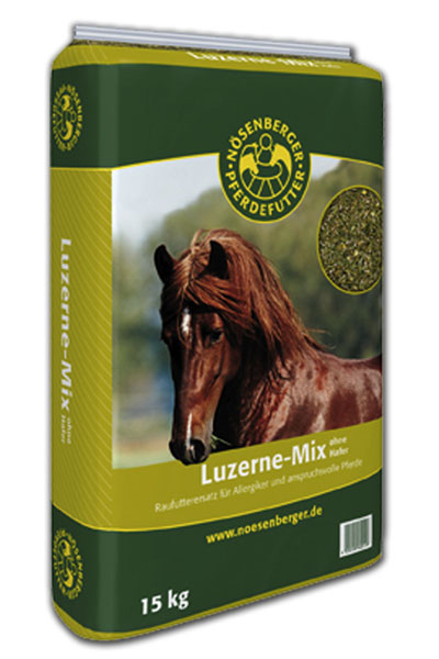 Luzerne aus der Champagne und bieten so eine hervorragende Qualität. Die Luzerne wird von uns in einem Spezialverfahren entblättert, sodass sie staubfrei und proteinärmer wird. Auch unser Luzerne-Mix ist ein Strukturfutter ohne Pellets und absolut homogen. Ein Anfeuchten oder Wässern ist selbstverständlich nicht nötig, kann aber beispielsweise bei alten Pferden mit Zahnproblemen gemacht werden.